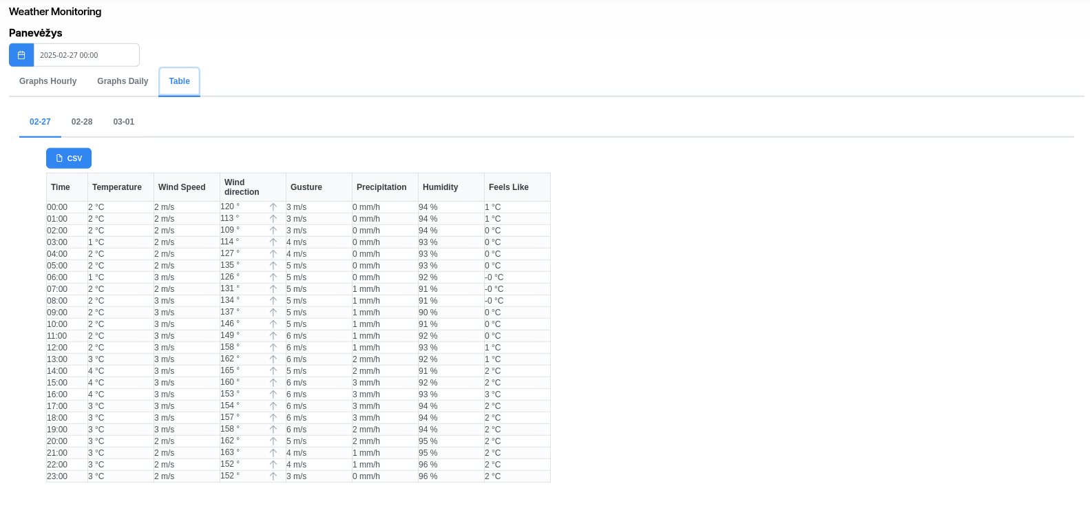 - Tabular Data View: Provides detailed weather records in a structured format for easy analysis and export.