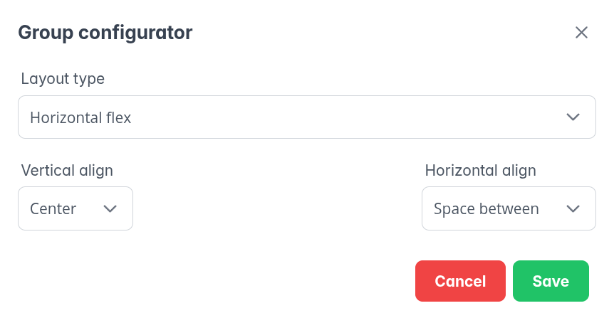 Opens a dialog where users can configure the group’s display layout and alignment: