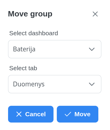 Opens a dialog where users can select a different dashboard or tab to move the current group.