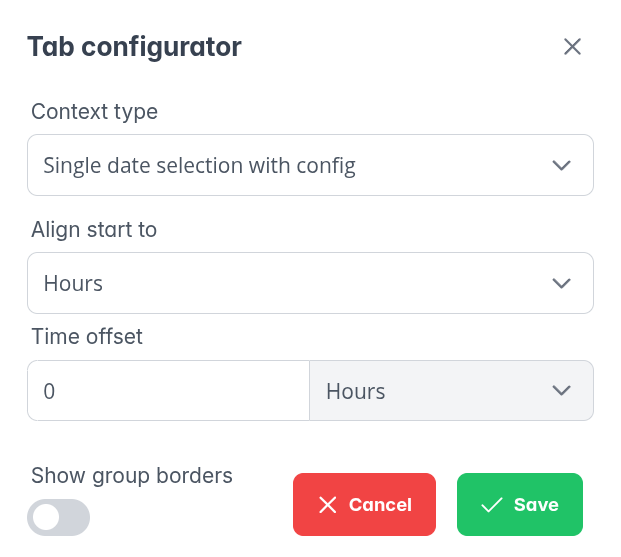 Single Date Selection with Config: Allows aligning the start to a unit, setting a time offset, and adjusting the reference time for all components. Adds a single date selector to the tab.