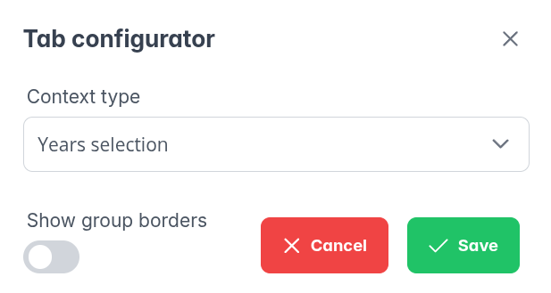Years Selection: Adds from/to year selection inputs for all components in the tab.
